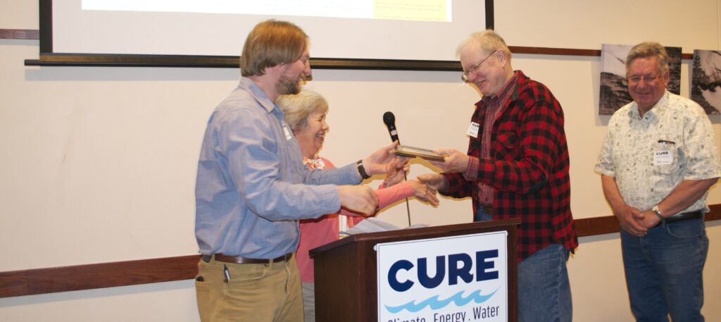 Over 150 people attended CURE’s Annual Meeting this year at the Maynard Event Center in Maynard, MN. Other award recipients included Lauri Wyum of Montevideo, recognized as CURE Volunteer of the Year. Ken Paulman of Fresh Energy received CURE’s Good Media Award for his work publishing Midwest Energy News. And Sally Finzel of Morning Sky Greenery, a nursery specializing in Minnesota native prairie wildflowers and grasses, accepted the Good Business Award. Sisters Kay and Annette Fernholz of Earthrise Farm were honored as this year’s RiverKeepers.